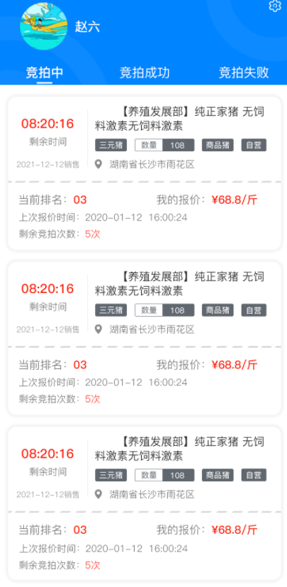 項(xiàng)目簡介:主要是針對內(nèi)部所有公司及供應(yīng)商的豬銷售競拍APP,所有采購商可以在APP上進(jìn)行競拍及管理。發(fā)布商可以在線發(fā)布競拍計(jì)劃及管理銷售計(jì)劃。