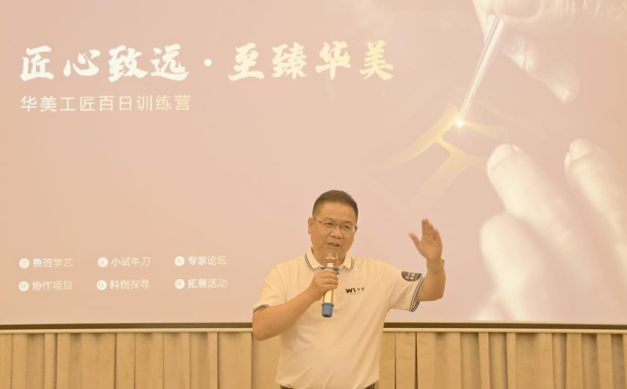 2016年的政府工作報告中,李克強總理說:“要鼓勵企業開展個性化定制、柔性化生產,培育精益求精的工匠精神”。工匠精神是一種職業精神,它是職業道德、職業能力、職業品質的體現,是從業者的一種職業價值取向和行為表現。為大力弘揚和傳播工匠精神,激勵華美員工養成精益求精、追求卓越的工匠品質,2021年7月22日,華美科技工匠百日訓練營啟動會在華美一樓培訓室召開,華美科技領導班子、各部門一級負責人、生產、工藝、質量、精益、設備等人員參加了本次啟動會。