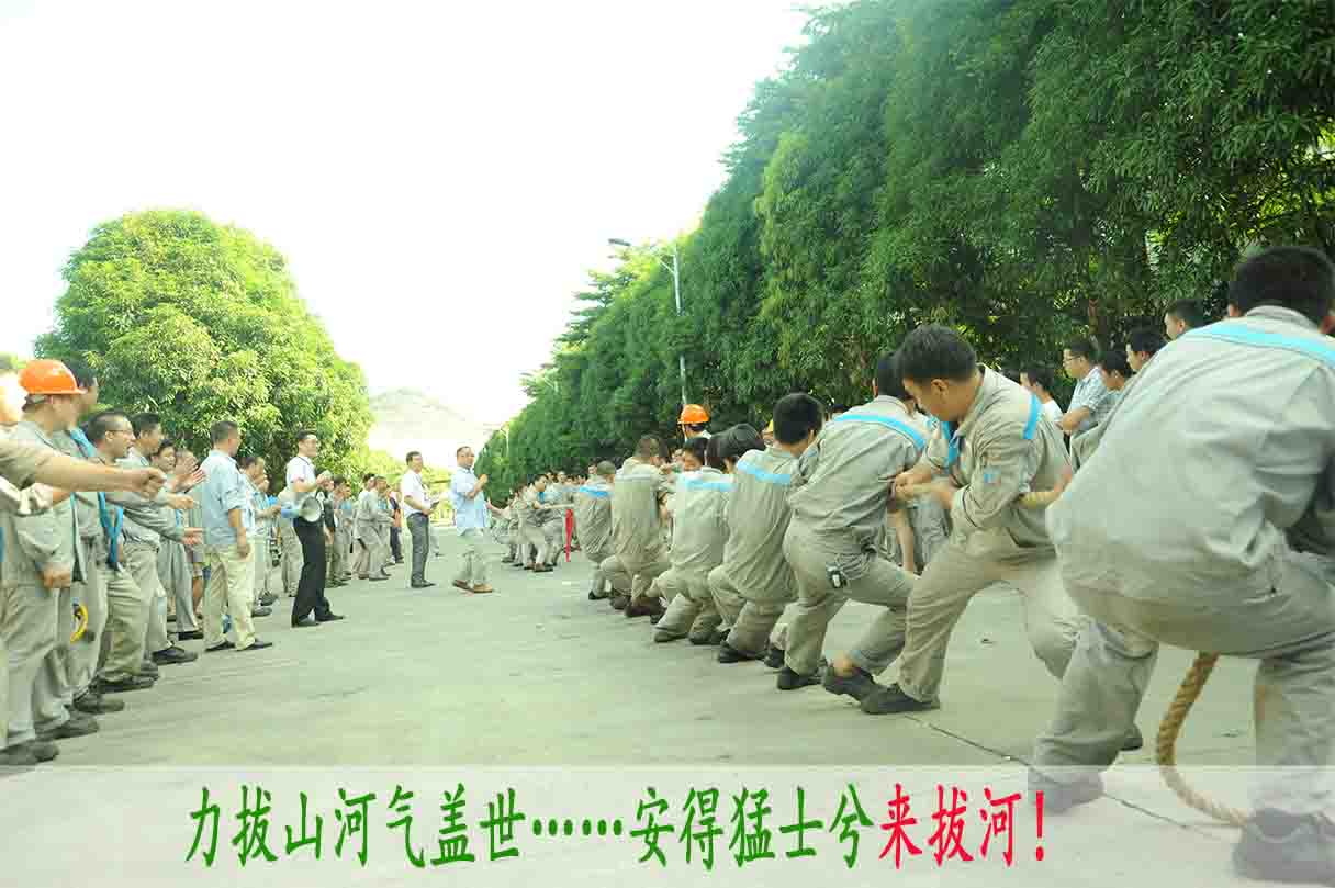 本次拔河比賽,華美板材各班組及辦公室人員組成了14只強隊,每隊10名隊員。在首輪淘汰賽中,金盾、飛虎、禿鷲、集結號分別力壓陽光、夢幻、亮劍、利戰隊,獲得首輪晉級資格。