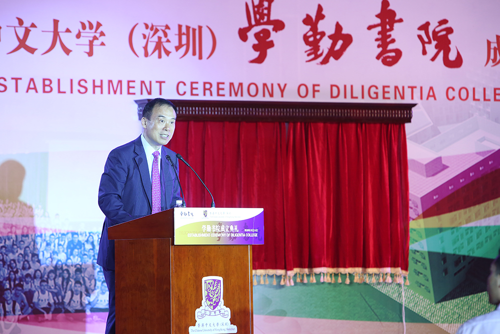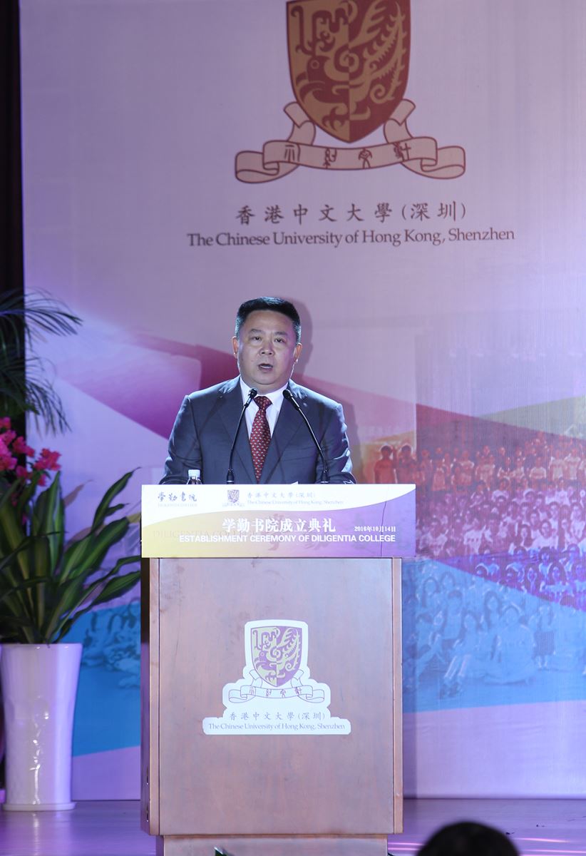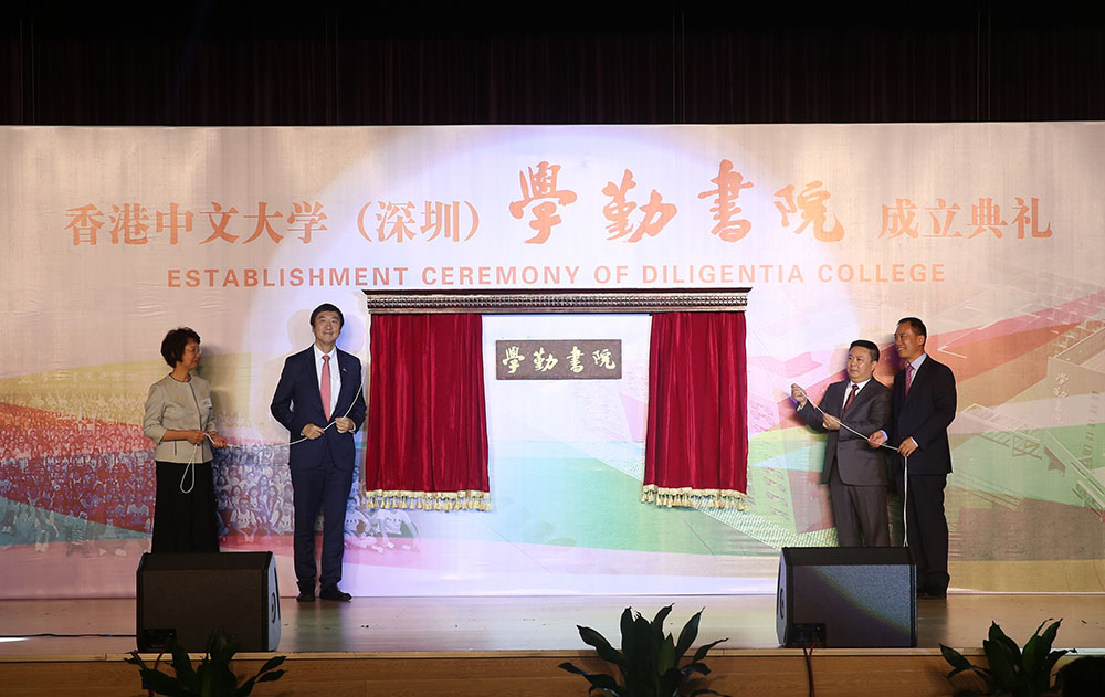 ”致辭結(jié)束以后,書院創(chuàng)辦人鄧學(xué)勤總裁、港中大(深圳)理事會(huì)沈祖堯主席、校長徐揚(yáng)生教授、書院院長顧陽教授一同完成了揭幕儀式,至此宣告了香港中文大學(xué)(深圳)學(xué)勤書院正式成立。 我們有理由相信,在香港中文大學(xué)(深圳)和深圳市正中公益慈善基金會(huì)共同努力下,學(xué)勤書院會(huì)越辦越好,也期待未來讓教育反芻城市發(fā)展,讓城市的進(jìn)程提升教育的未來!